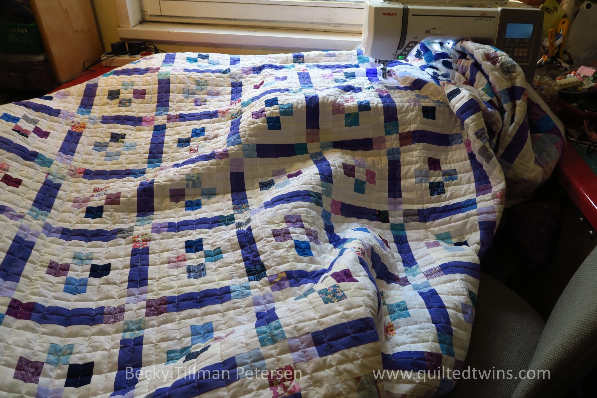 Then, I relooked at the information as to how big this one is! 99"x107" No wonder it took so long! I hadn't needed to check the measurements when I sandwiched it because I already had the backing paired with the front, waiting to be sandwiched and quilted.