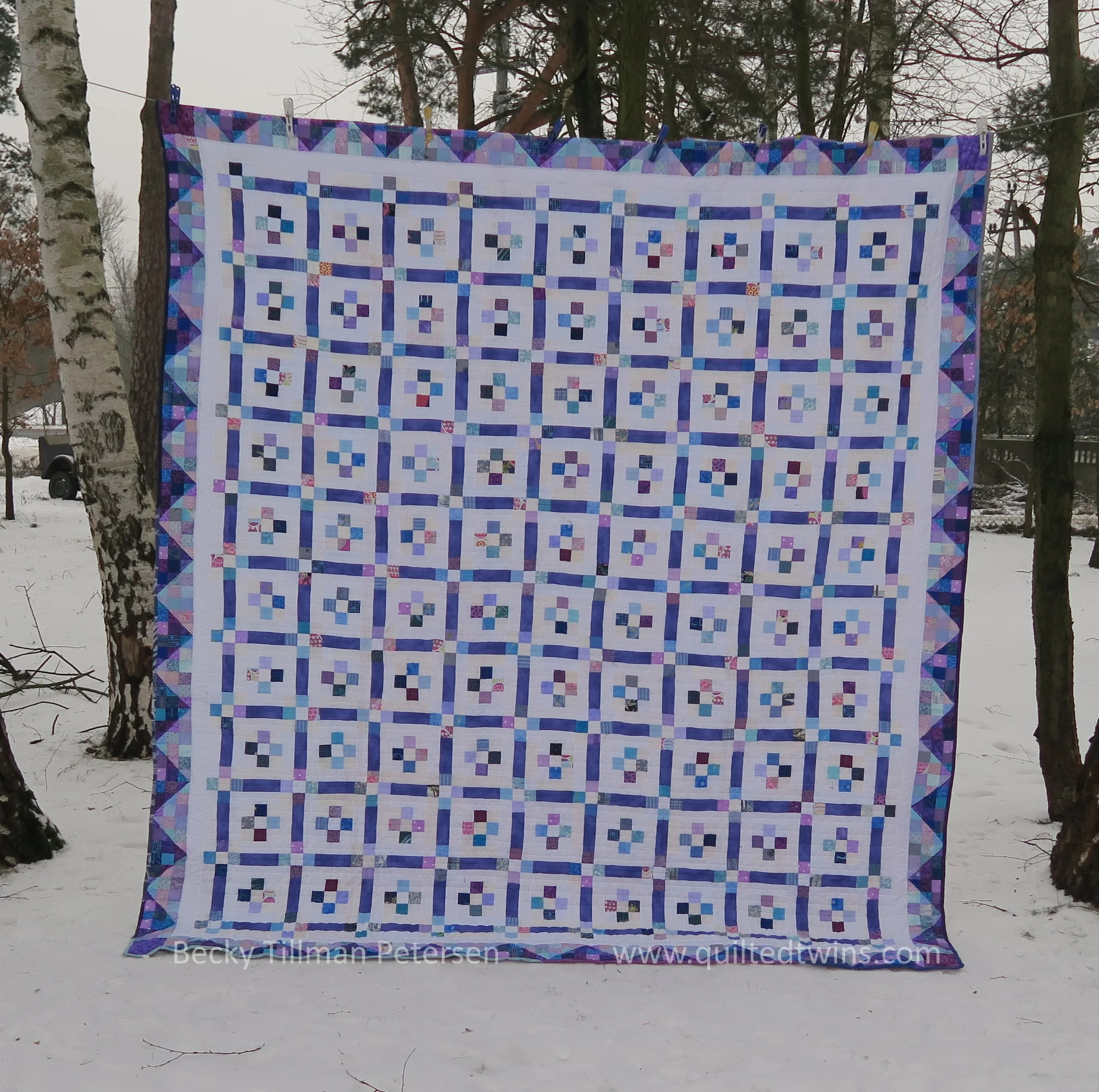I had argued with myself, telling myself since there are so many angles that I should do curvy quilting. However, I told myself, "No!" You are going to "KISS" --"Keep It Simple, Stupid" and stick to following the theme of "clean and simple" all the way through to the quilting. So, I did straight line quilting. It did take much longer than a simple all over FMQ design would have, but I like the end result very much.