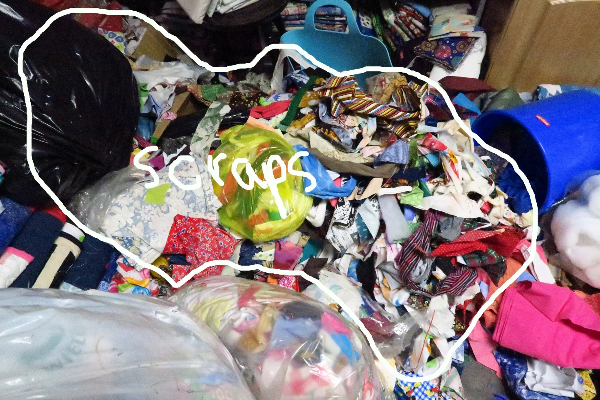 I've been feeling really pressured by the mess that these scraps were creating. Also, while dealing with these, it wasn't easy (slight understatement!) to use my table for sandwiching, drying, or anything else quilt related. It felt like these scraps were stopping progress in all areas of my quilting life.