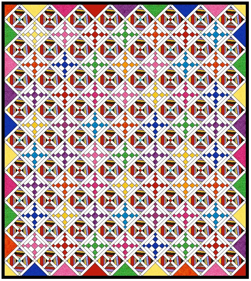 Even though this is a mock up from the Electric Quilt program, I've found that the end results often look very similar to the layout as planned. I've been surprised, in fact, since I usually use "stock" fabric.