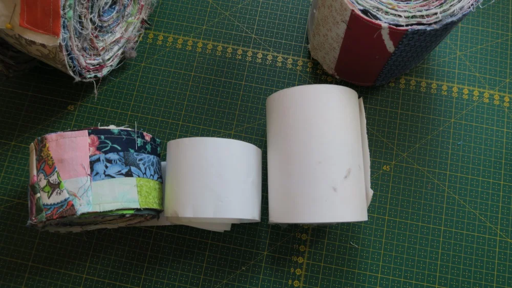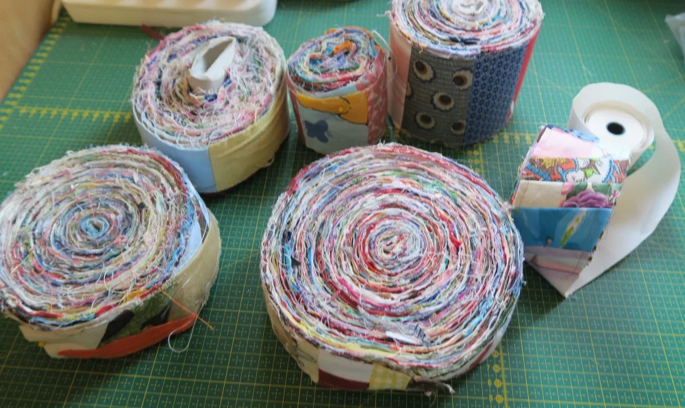 These are strips ready for me to use. The wider one in the back is almost 4" wide. The one on the far right is the one I worked on a little today.