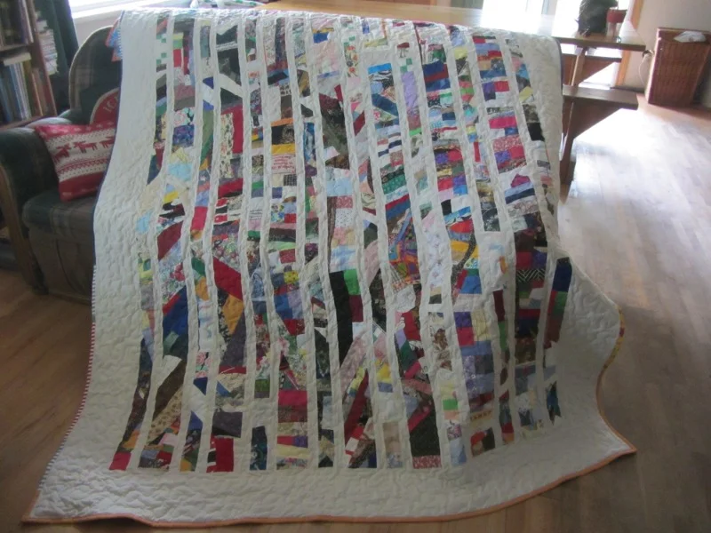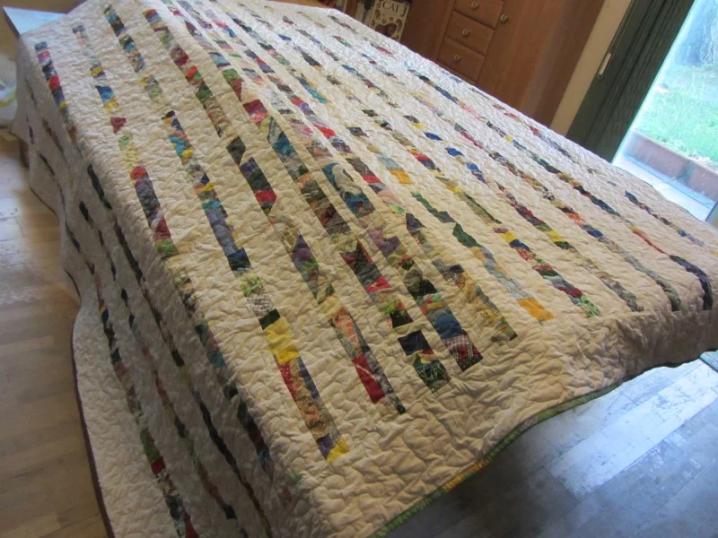 With this one, I used narrow strips, but I spaced them wider as I went toward the edge of the quilt.