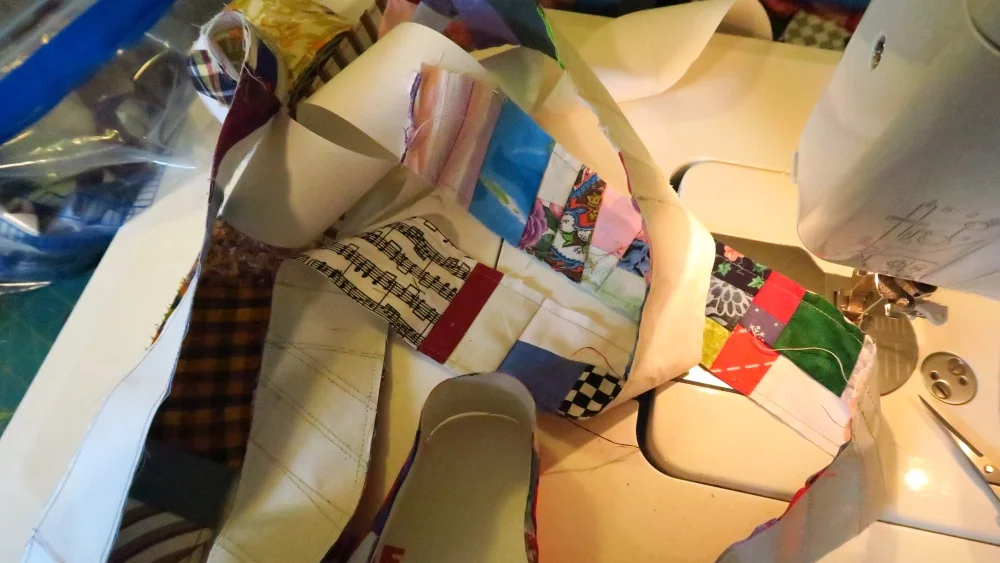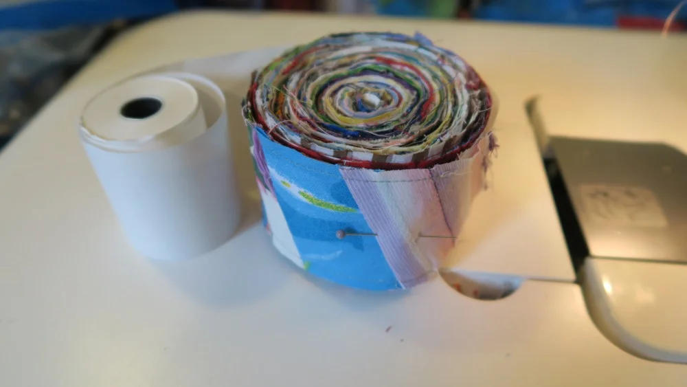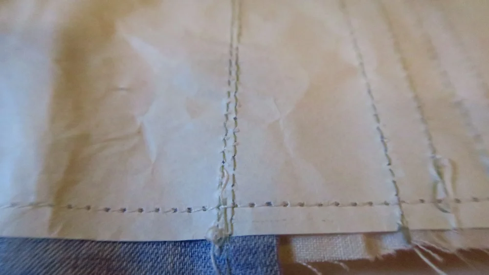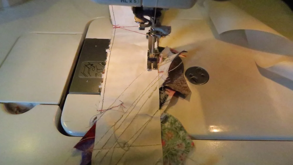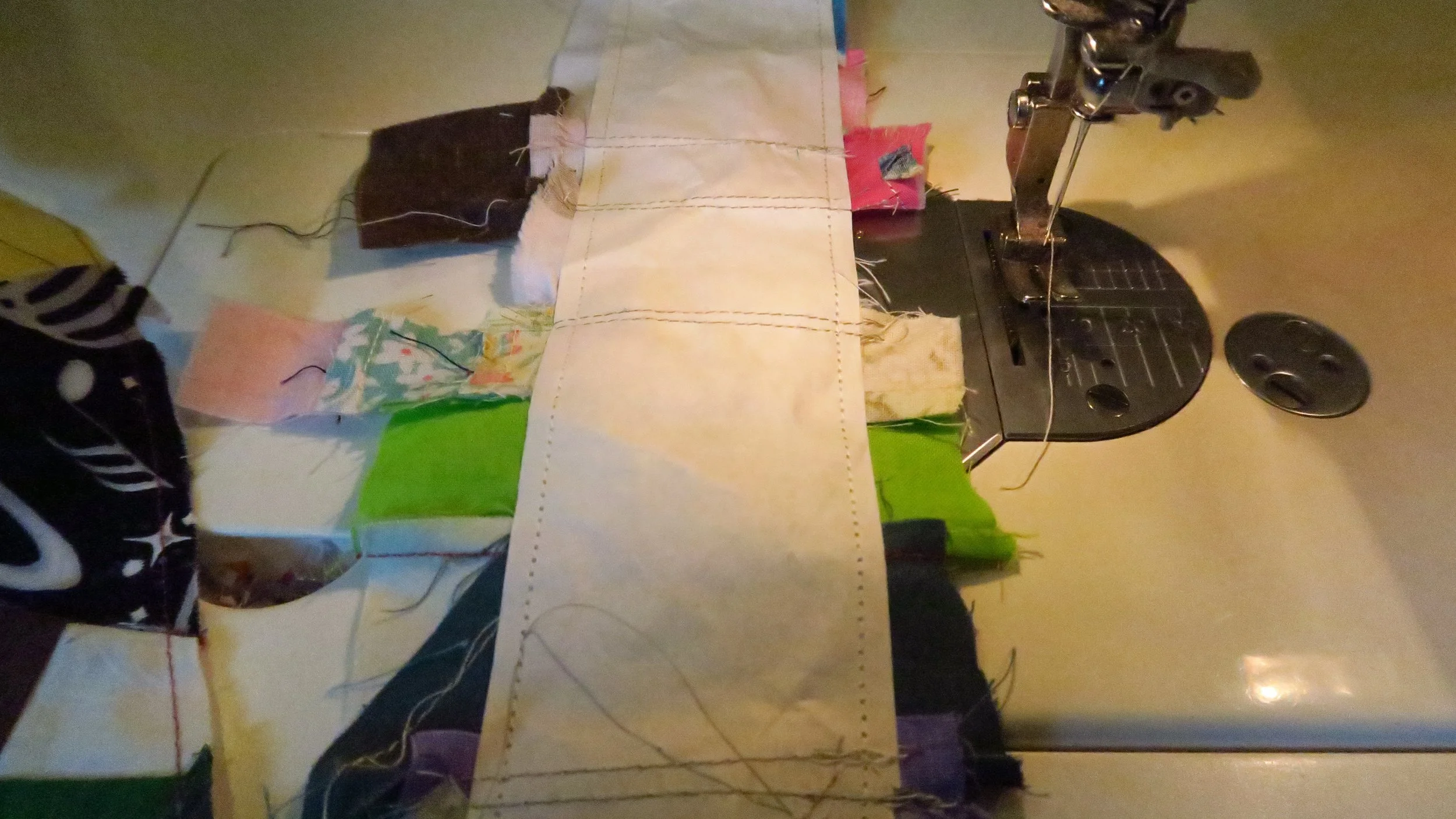 When I felt like stopping for the day, I turned over the strip and sewed in from the edge 1/8". Yes, it will dull your needle. My needle already felt dull.
