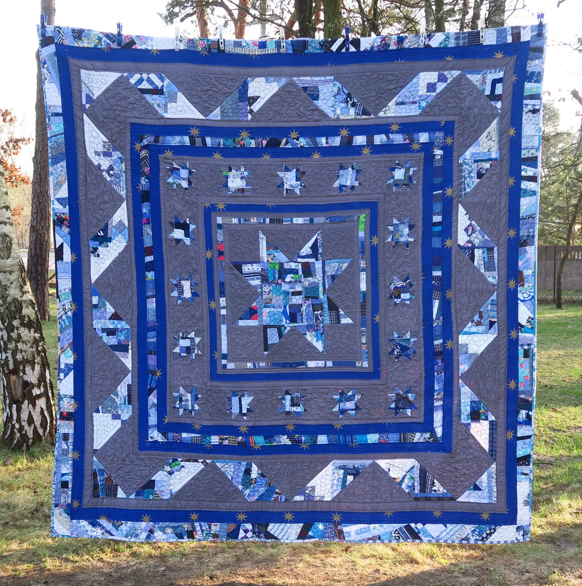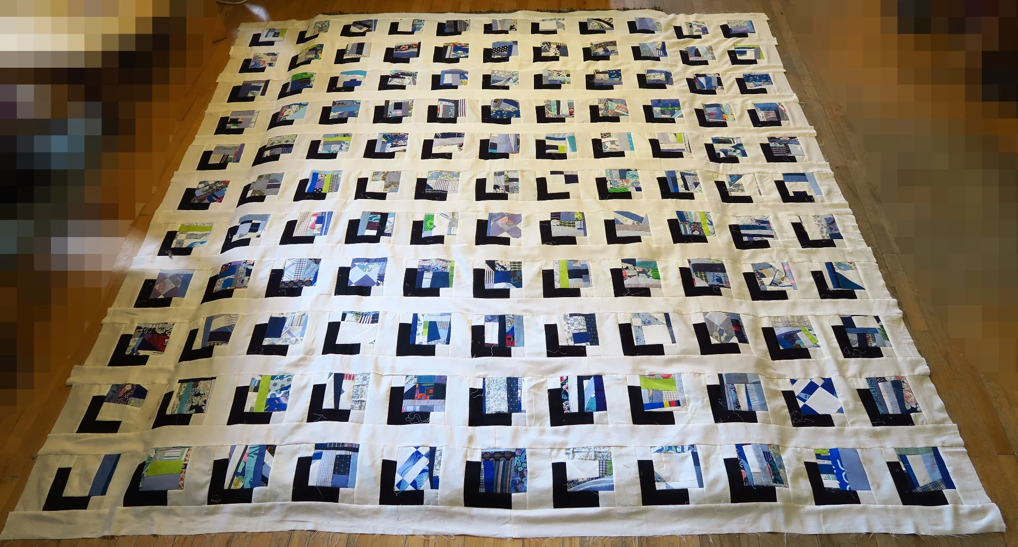 The last three here are part of the upcycled blues series, but they are crumb quilts, so I put them here.