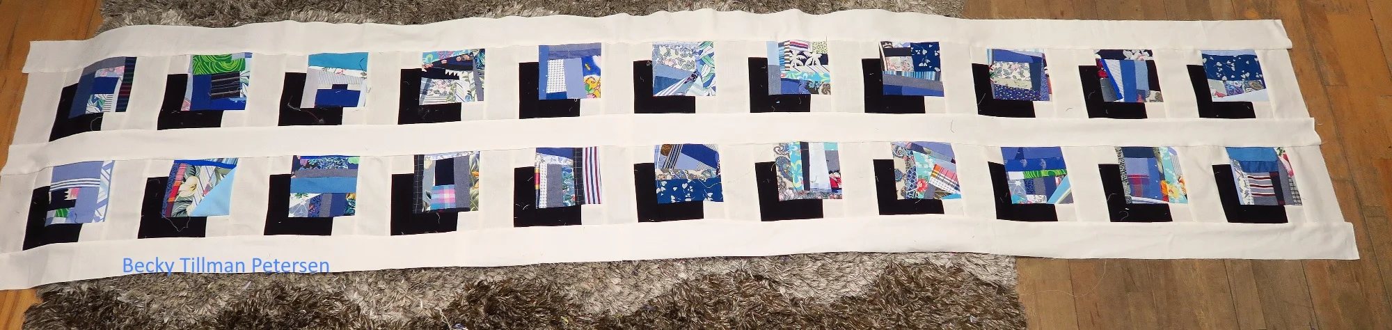 First of all, I put together all the blocks I had already made into 2 long rows and I sewed those together.