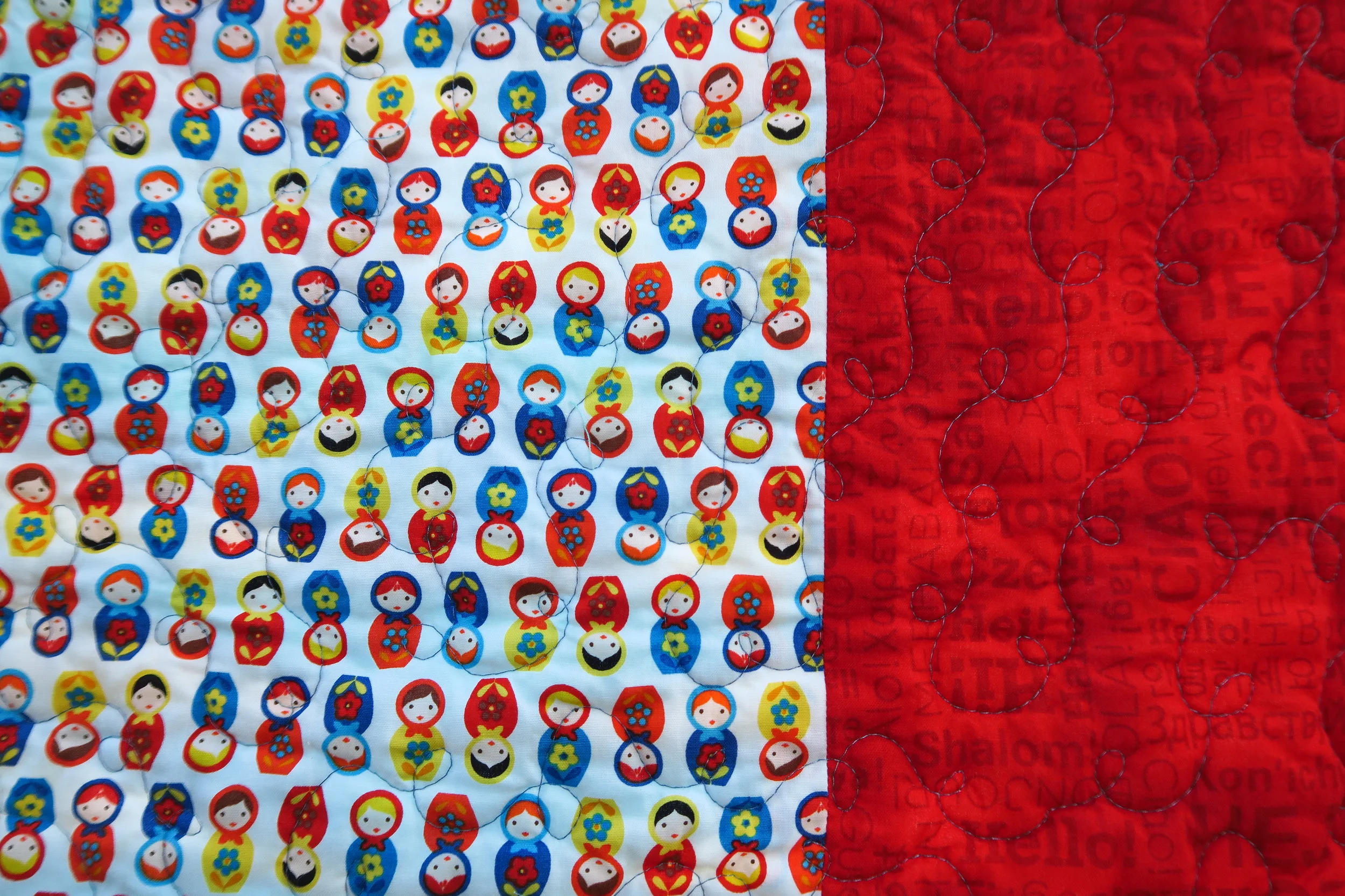 As I've mentioned when discussing the other two girls' quilts, their mother is from the Ukraine. That means their grandparents live there still. These Russian dolls are adorable and are a perfect reminder of their home - or at least their mom's home. They've lived multiple places since they've been born. I'm sure "home" for them is wherever mom and dad are!
