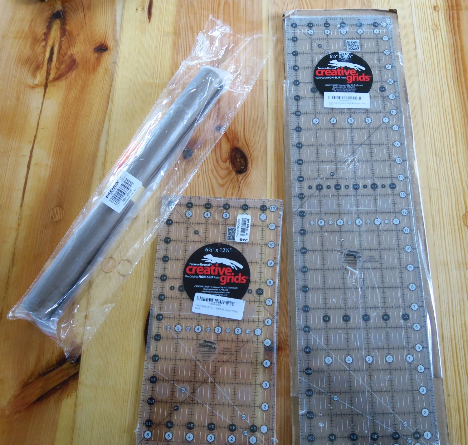 OK, OK, I had ordered the rulers which arrived and he brought them over AND some nonstick silicone baking sheets that can be used on my machine bed for free motion quilting instead of a Supreme Slider or similar item.