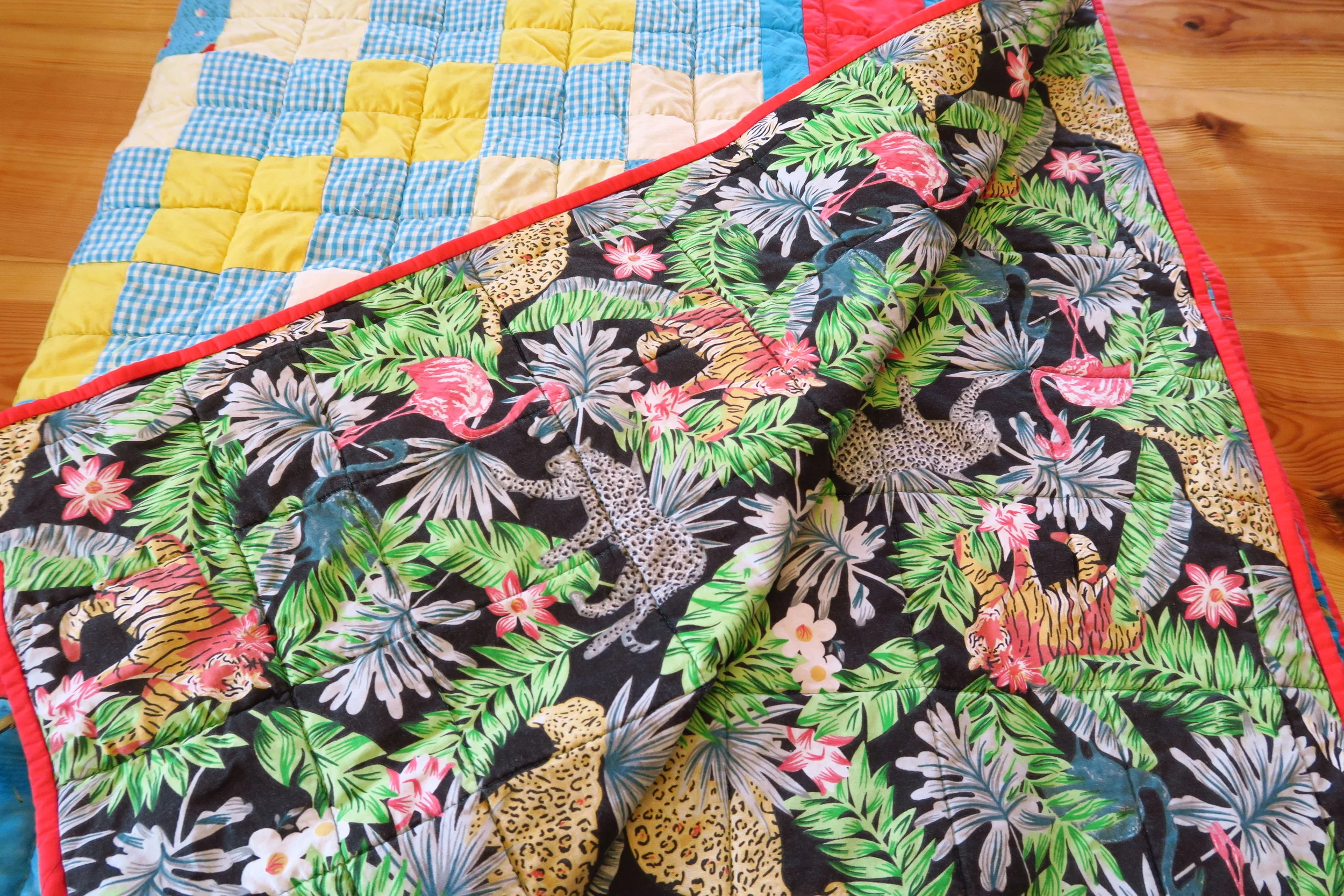 And here I let you see the backing which of course shows the quilting as well! You can see that I’m getting braver in my “old age”!