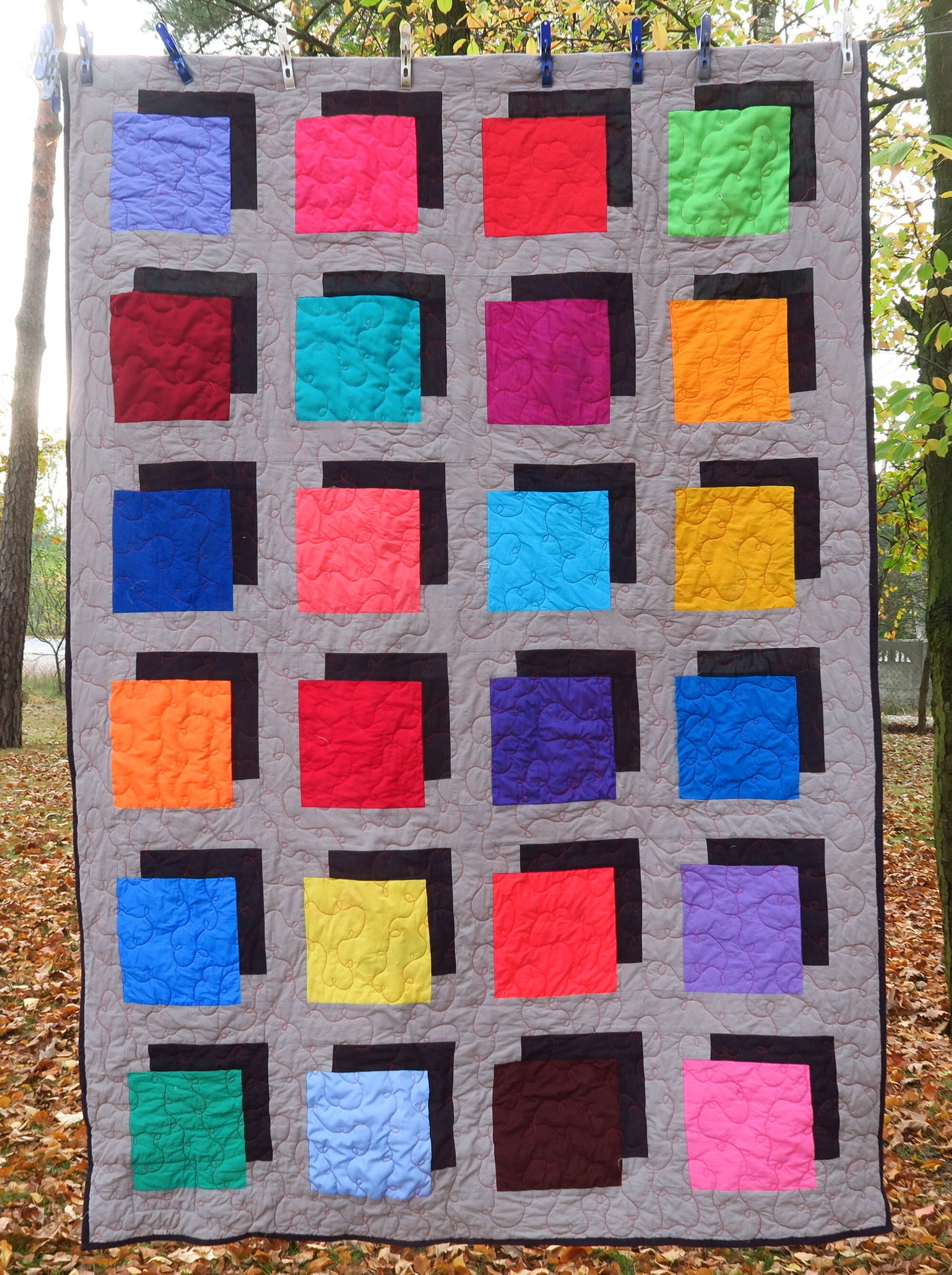 The darker gray background on that last quilt is because I took the picture before it was dry. I hung it up, took the picture and left it to dry while I went about doing other things.