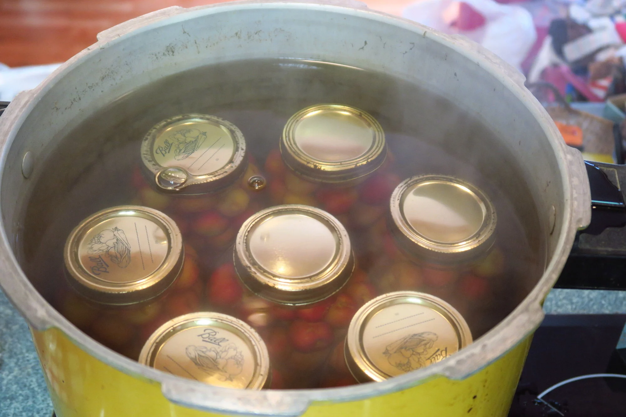 We had finished all the “work” part by about 1:30 pm and were just waiting on the canner to come to a boil again. We were all done by about 2:30 pm.