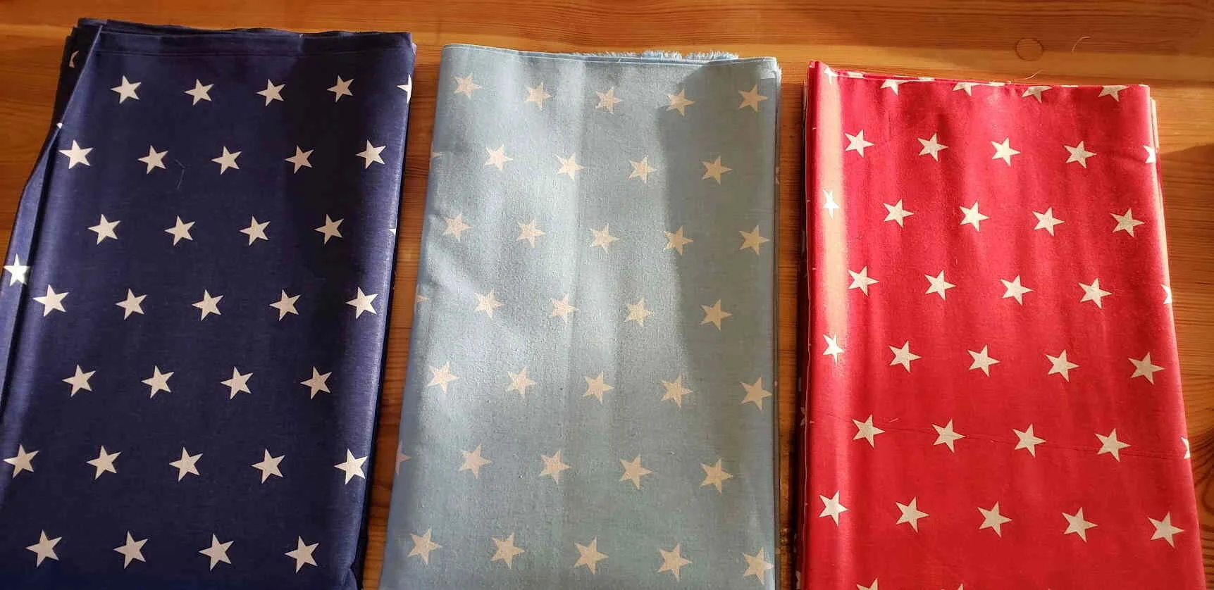Here’s what I got. The stripes - well, there are for bindings. I got 3 meters (yards) of each color. I’m tickled and almost can’t wait to start cutting them into strips so I can get preparing them.
