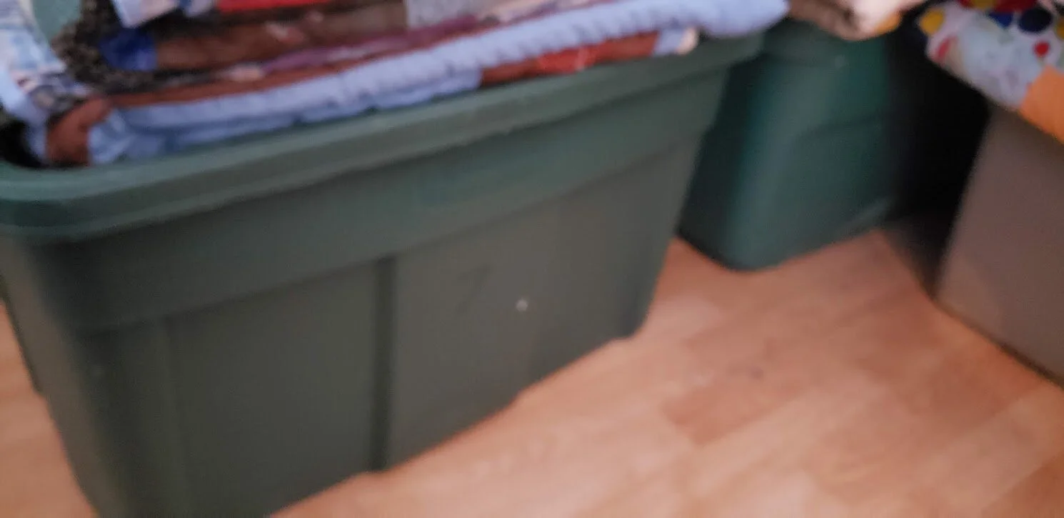 This messy scribbling means I have 107 small tops in bins and the wardrobe and 69 large tops. Plus I have some at the house that need to be finished up into twin size before I can quilt them. The ones I have in the house are pretty much all from Fran - and are Around the World style.