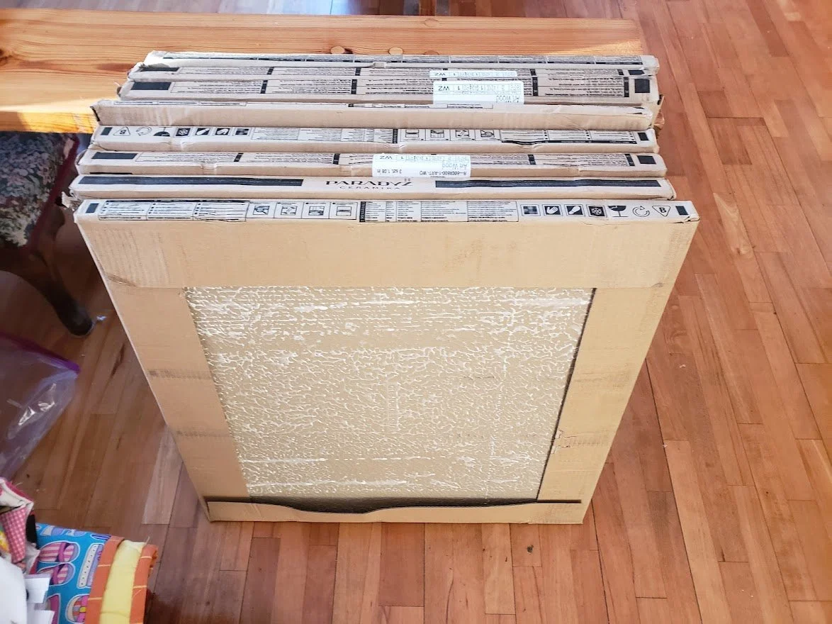 Artur arrived shortly after 8 - my husband went to the train station to pick him up. They immediately brought in the tile from the van and anything else that was needed that was outside.