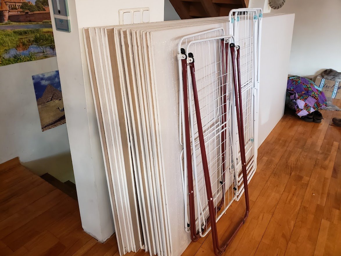 The stuff from the room. I will tackle it. Some of it also went into the library - the exercise equipment went there.