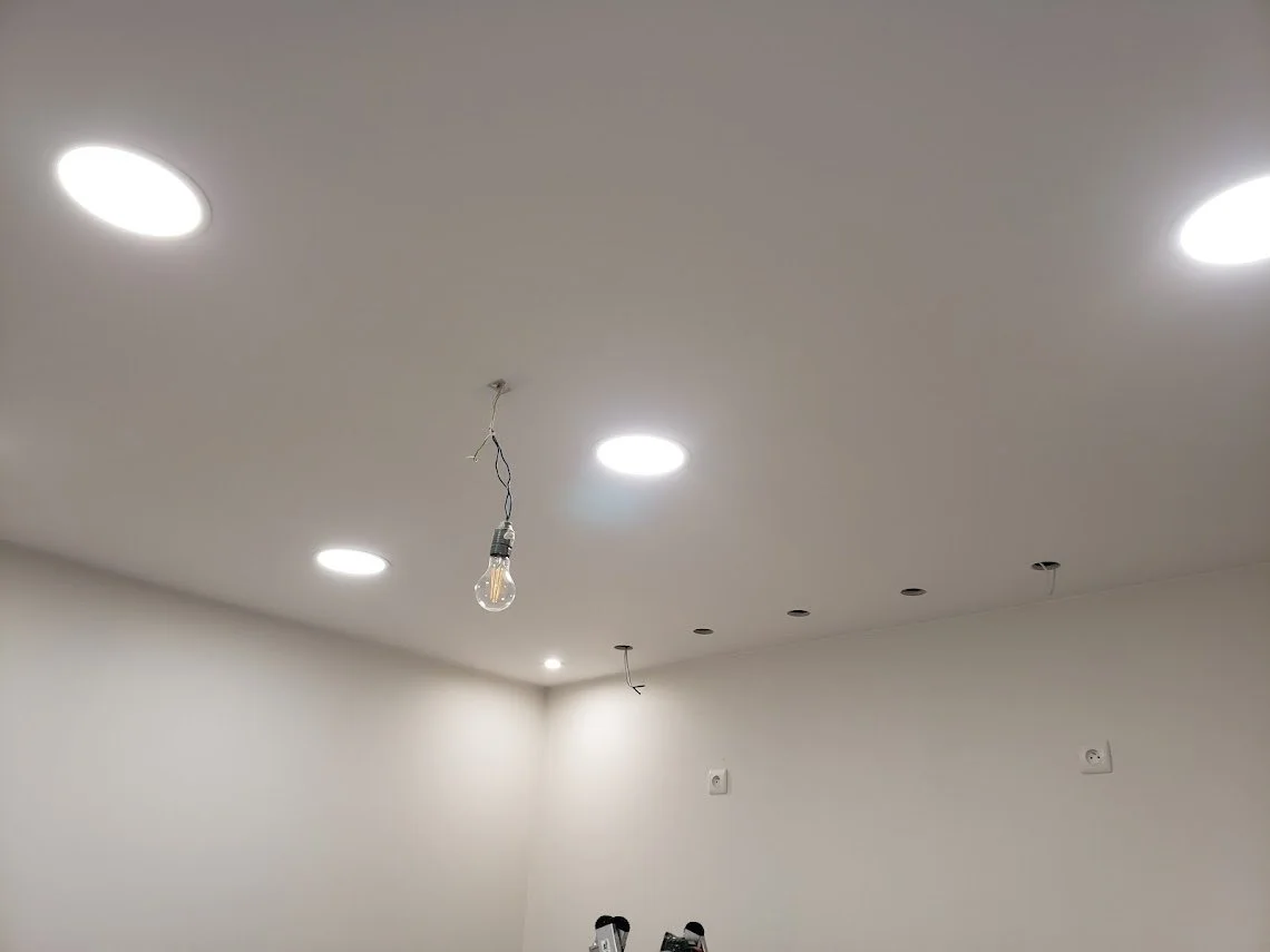 Not all the lights are in yet. Mike needs to get another tool to help him finish the little ones.