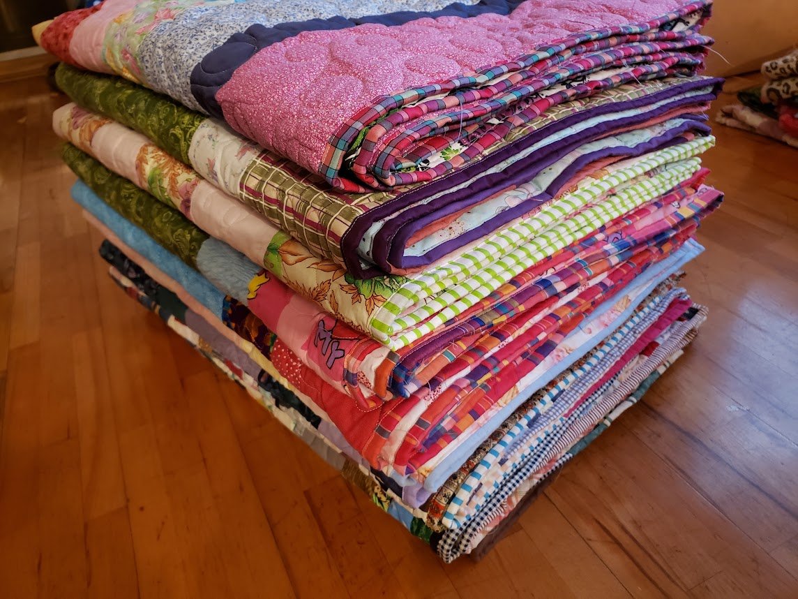 Many of the centers were made by Ewa’s mom - and one was sent in by some of you. I made 2 of those colorful crazy ones from squares made from donated tops that weren’t square or flat which I cut into 10.5” squares and then made new tops in a 6x8 layout. the smallish centers - I added borders to the outside, so I do have quite a bit of time invested in these quilts.