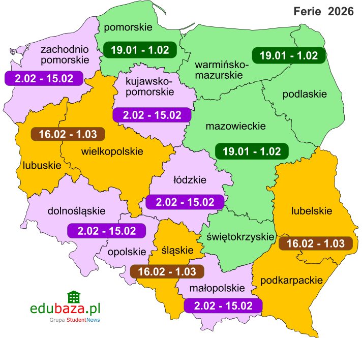 They split the whole country up into regions and then over the course of this period of time there are divisions. Here’s how it looks by the map of Poland with the dates marked.. This map shows the way the whole country is divvied up for this year - 2026.