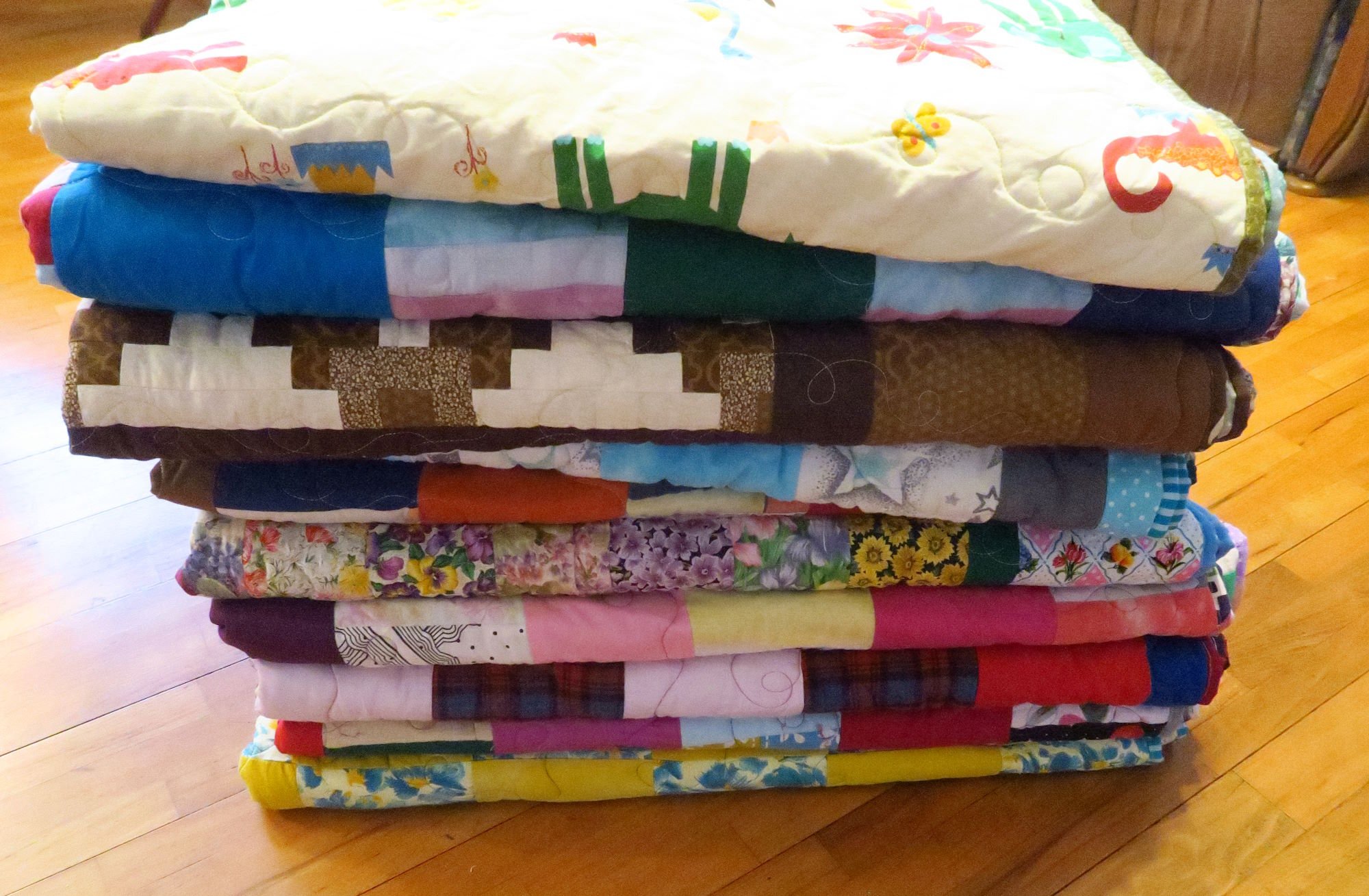 I’m starting to feel a bit of relief from some of the pressure of all the charity quilting I’m trying to do this year. Having 70+ quilts done feels very good. Truthfully I’ve finished 76 which is very close to 80. Since I show them in groups of 10, however, here are the next ten I have ready.