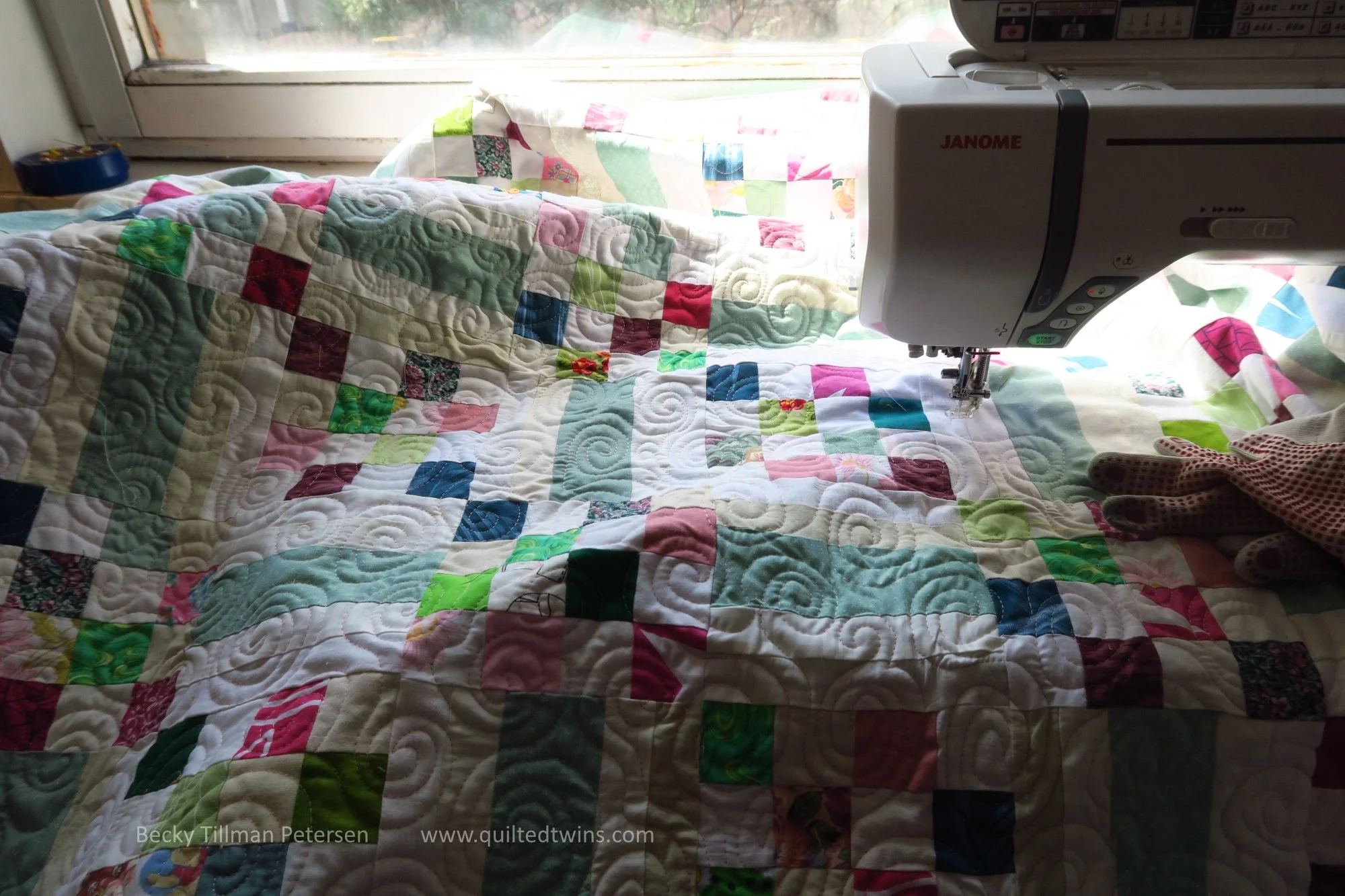 Then there’s Bloomin’ Nines which is comprised of leftover HST from other quilts. These are commonly called “bonus triangles.” I have bags and bags of them.