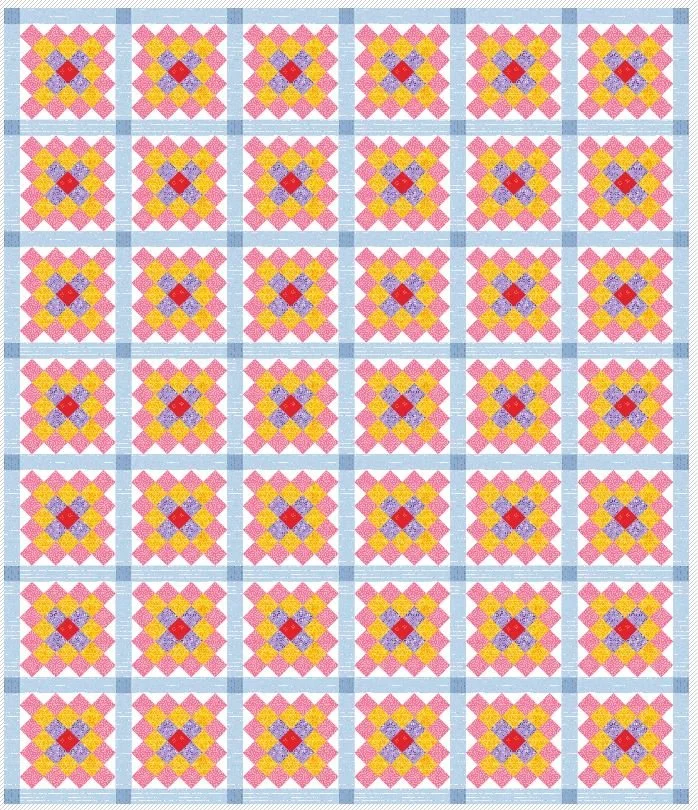 If I go for a 7x8 layout for the larger blocks, that is still a fair few - a total of 56 blocks. At least I won’t be trimming any of them off at the end by putting them on on point. These will not be on point. It will be a simple straight set layout with sashing and cornerstones.