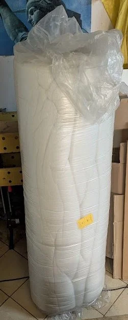 They sell poly batting in 50 meter (about 50 yards) which fits in the back of my van. This is a 100 gram batting or about 3 oz. Not high loft. Not extremely low loft either.