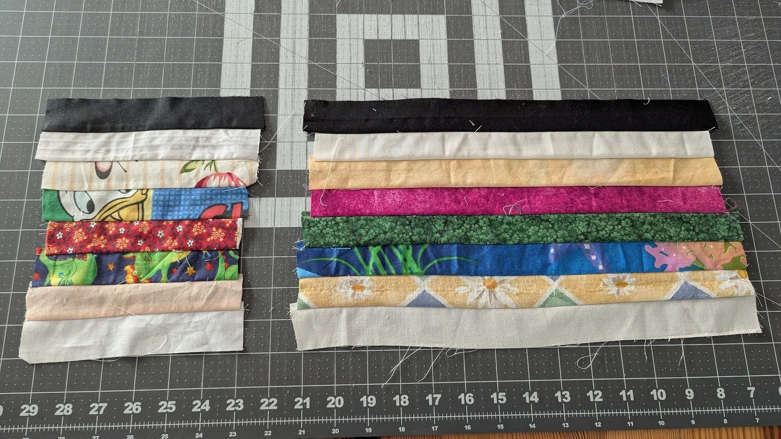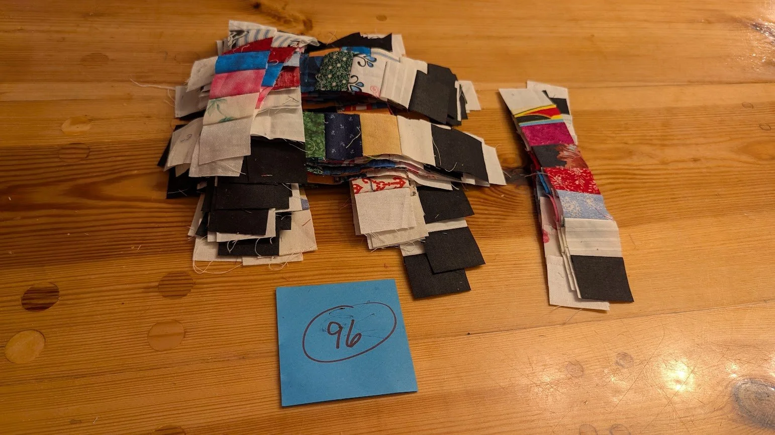 It is possible I could just make up some blocks and then more and then more. However, it seems to me to be more efficient to just focus on the same strip set until I get enough of them.