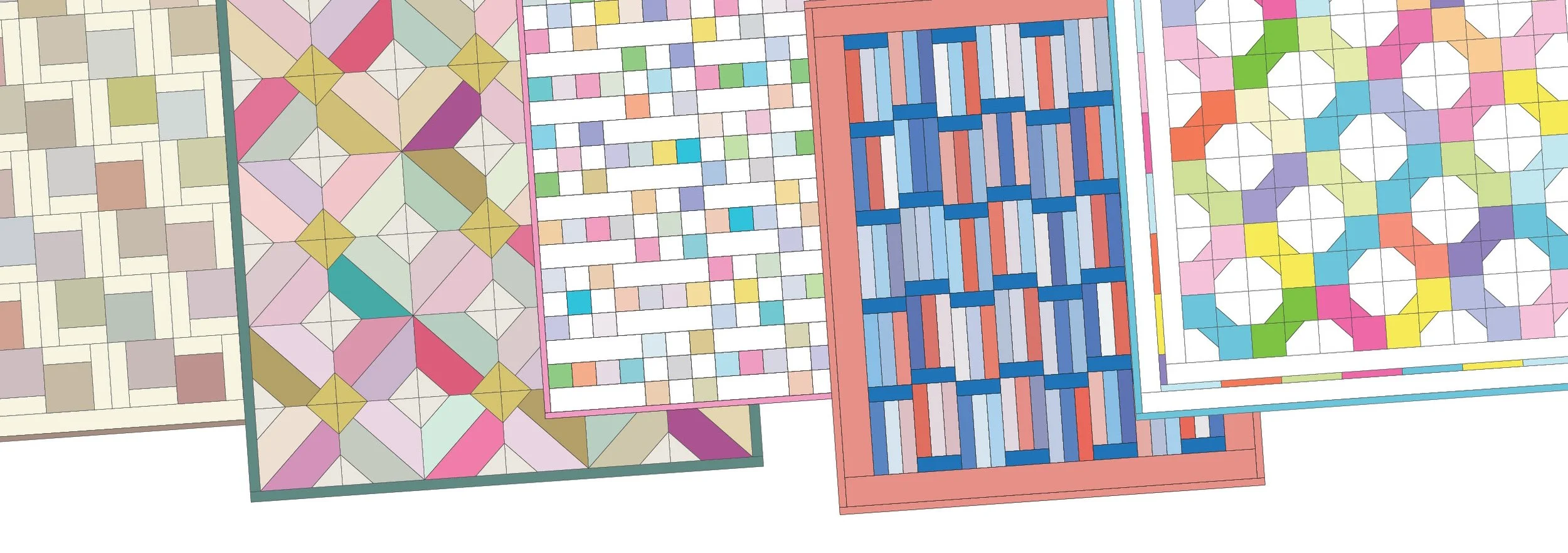 These are small quilts, able to be done in a day or two, and can serve as baby quilts or wall hangings. If you buy two kits, you can make a nice lap, and three would get you a twin size, in many cases. We are putting the pattern, the fabrics and the 5x5” pack of fabrics all in a really nice plastic project bag with a Quilted Twins sticker for you to remember us by! Each month you get a new project bag, so if you don’t have time to sew them up right now, you can just keep them in the bags, and sew them all next summer, when you might have more time. They also would be fabulous as retreat quilt projects.