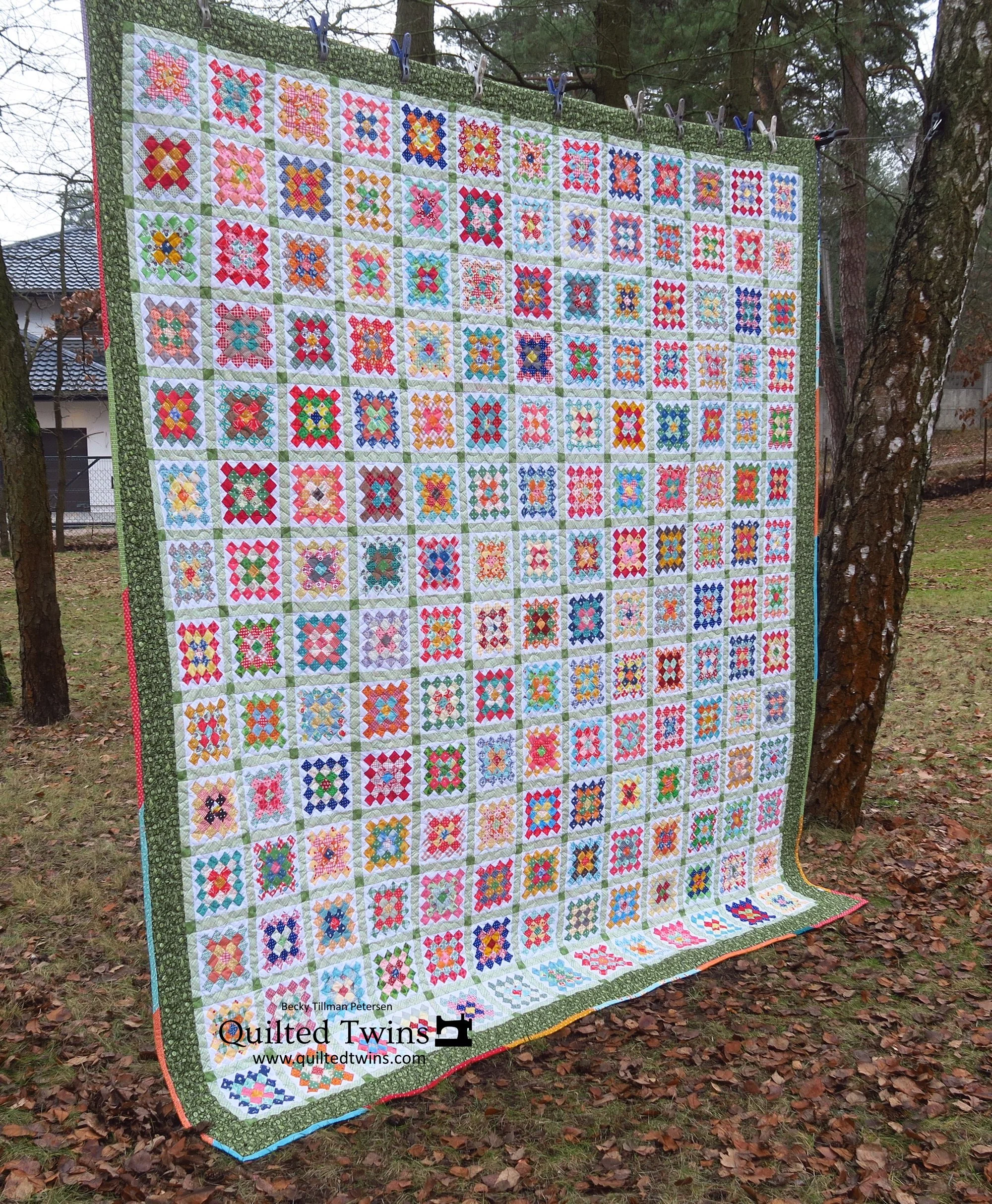 So, I did it. And I’m right. I can barely even see the quilting. What was I so worried about? The whole quilt is about those amazing granny square blocks!