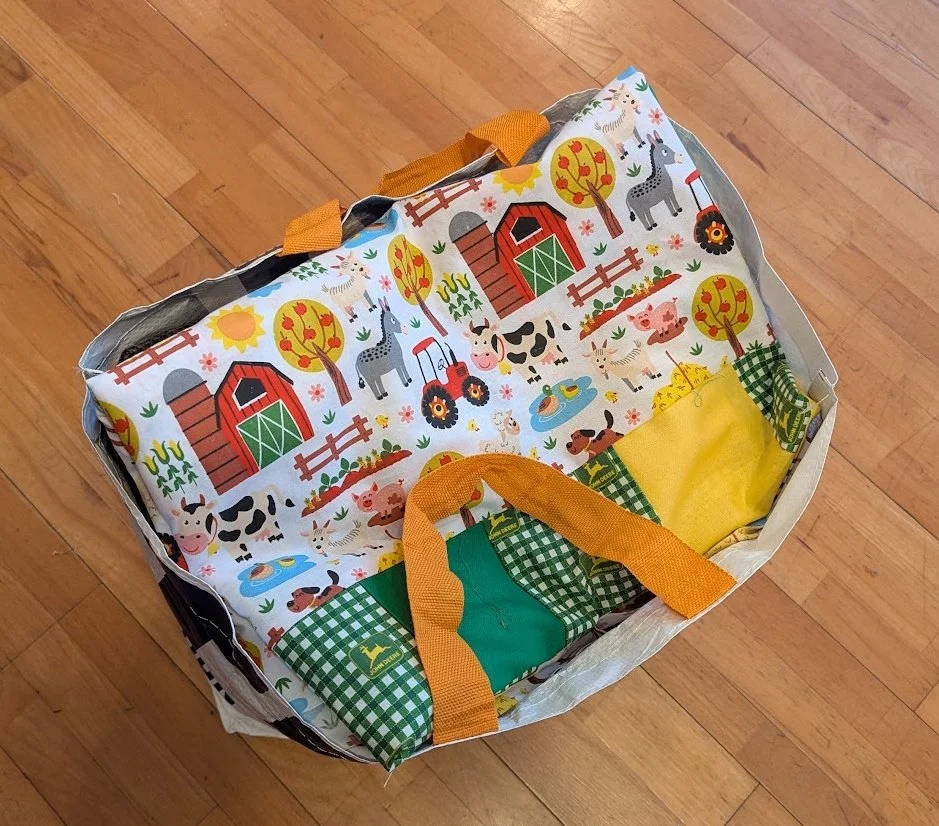 I piled them up, took a stacked up photo and then carried them to the church building in those wonderfully handy, strong bags we have here.
