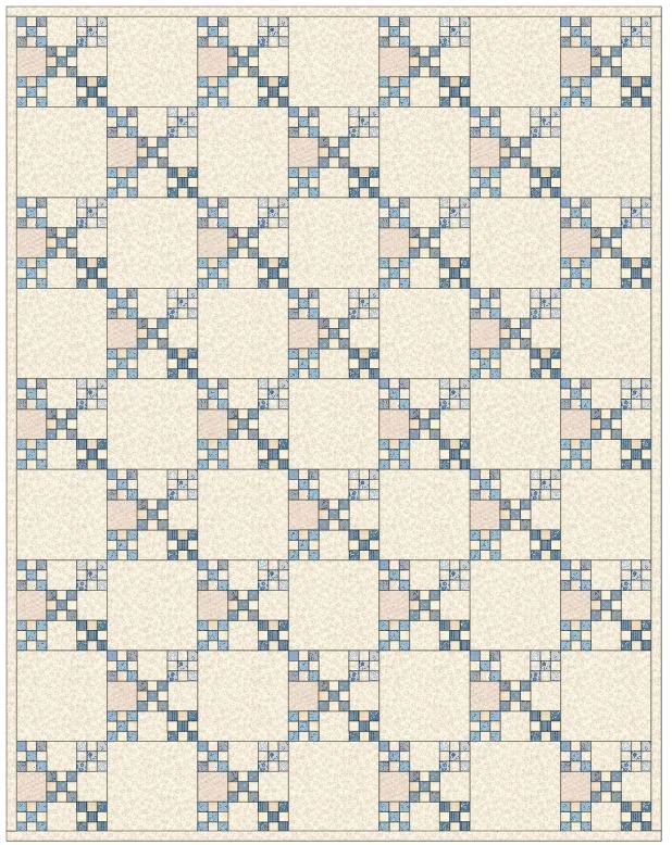 So, I decided to draw up a Double 9 patch with blue and cream in the size of a Quilt of Valor. I guess I’m thinking about that right now - summer and all and our Summer QOV challenge. I know those isn’t a panel, but still…why not try it? Wouldn’t it be mighty fine? Maybe a lady vet could get this one?