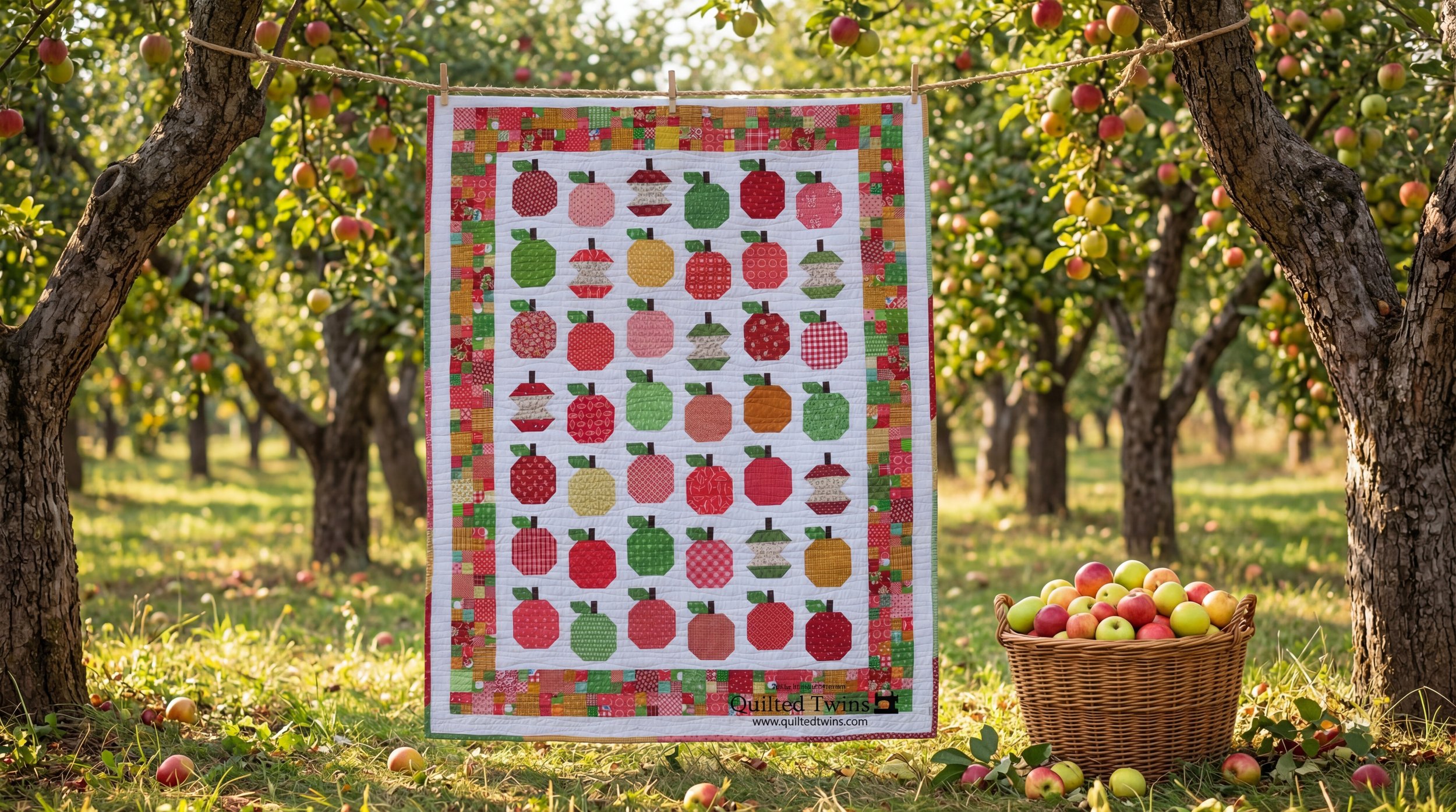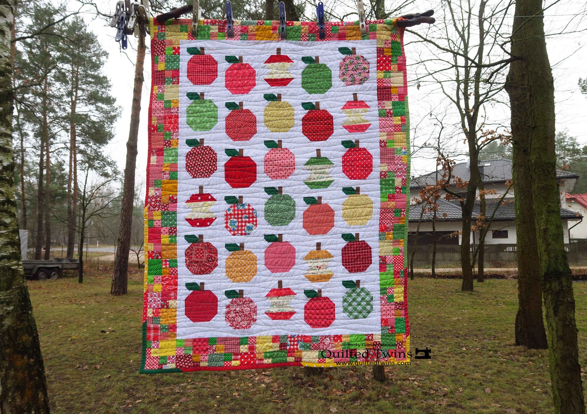 And just for fun, I put this Apple-licious quilt into an apple orchard! We have a lot of these here in Poland.