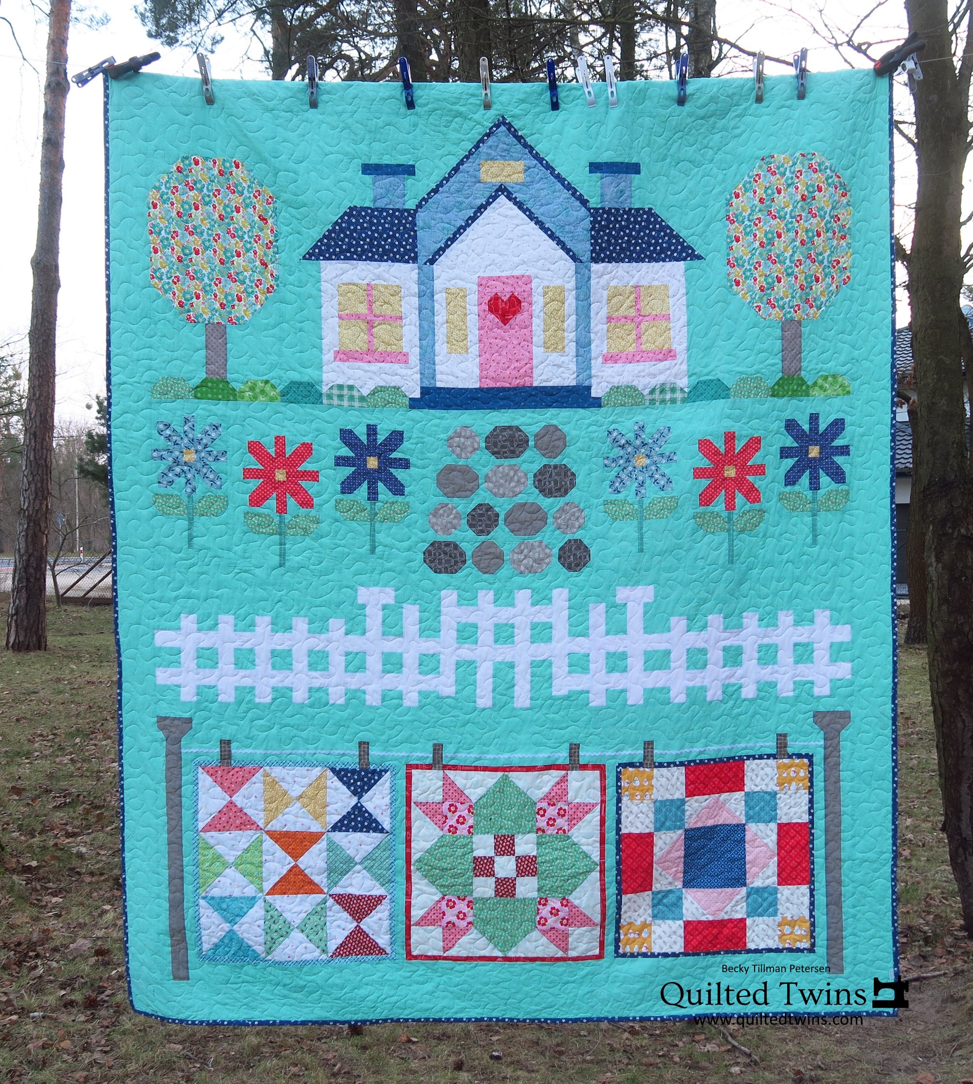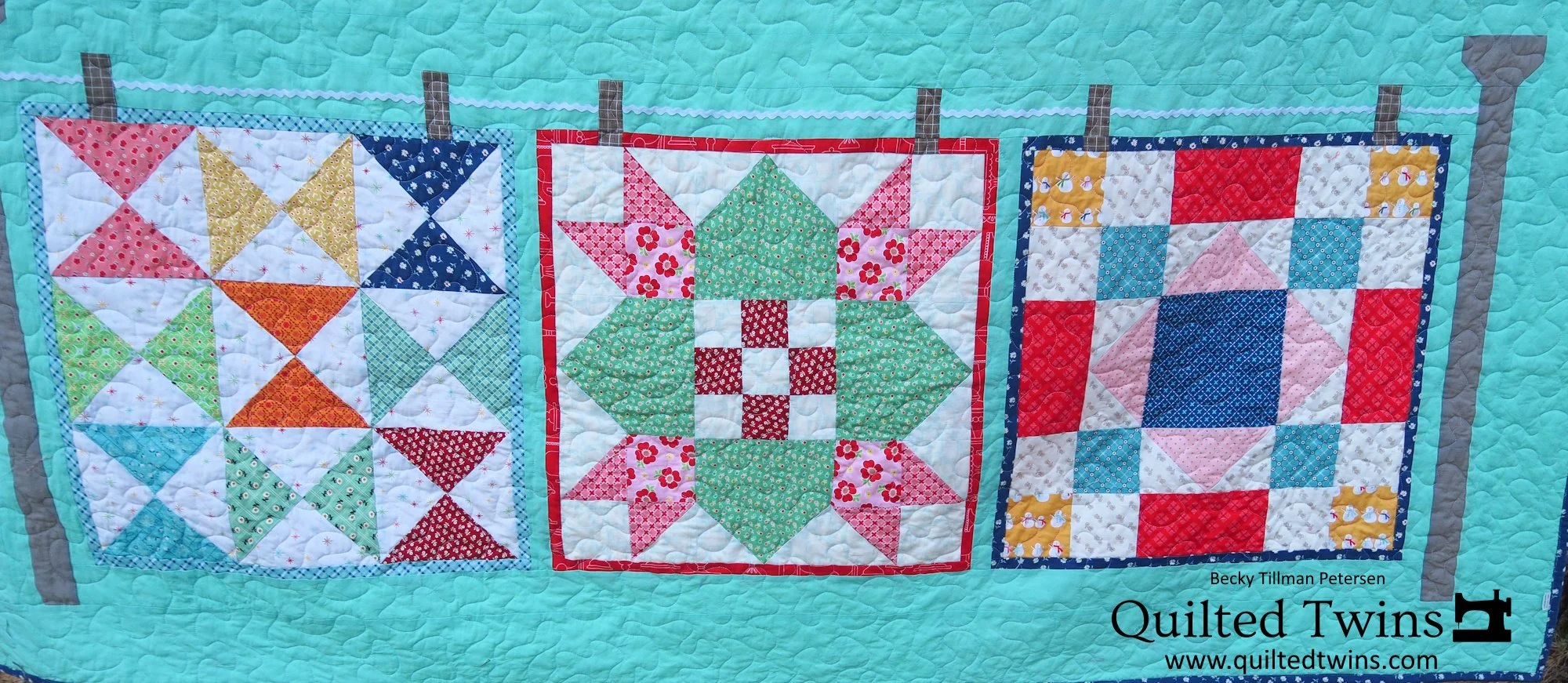 I really did not make a good choice as to the border on the little quilt hanging on the line as the far left block