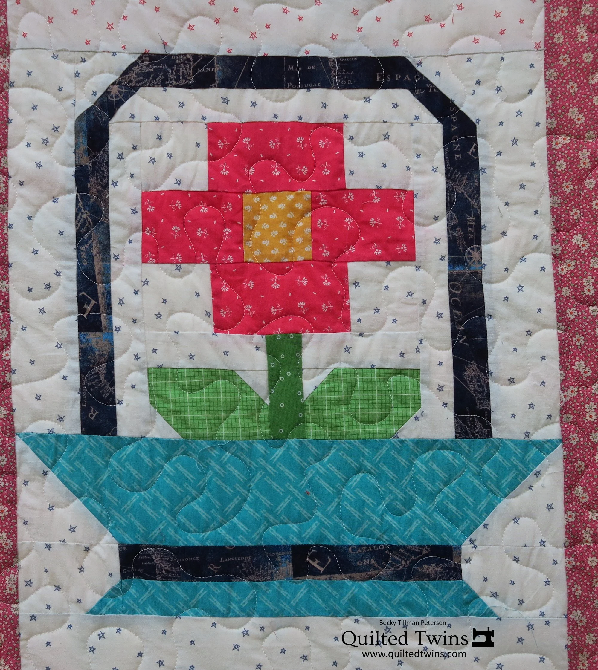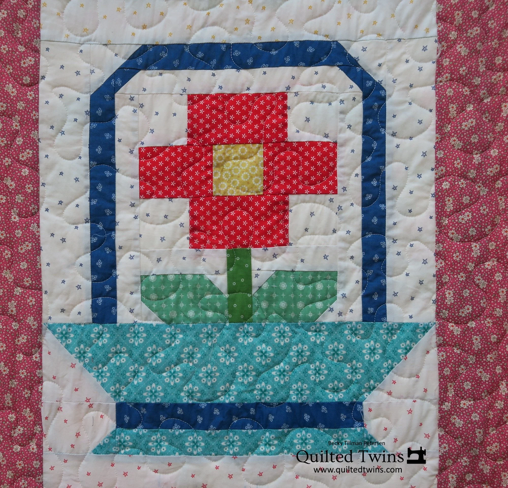 Since the blocks are so big, I actually made them quickly! In fact, coming back in contact with these, has made me consider making some more large blocks. They use up fabric faster, if that is a good thing, and definitely they make a statement! In fact, I’m considering finding some more large flower blocks and making up a scrappy quilt with them.
