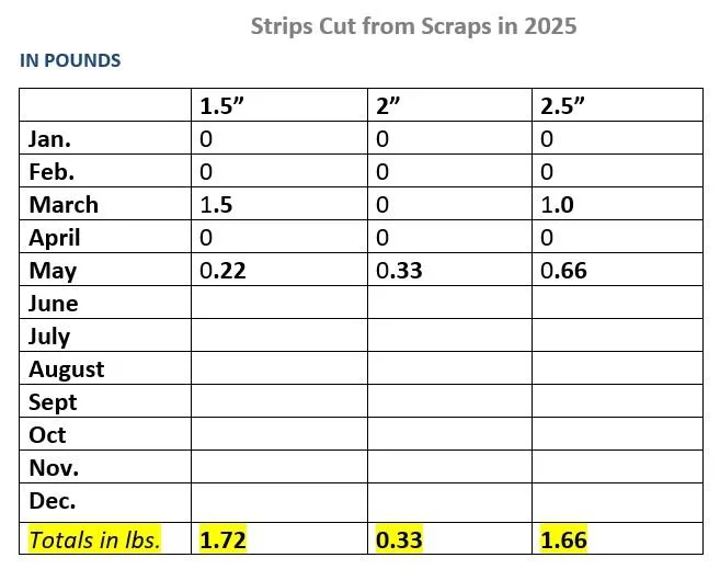 Yes, even though I was only back for less than a month this time, I still started to collect scraps that needed to be cut down into strips.