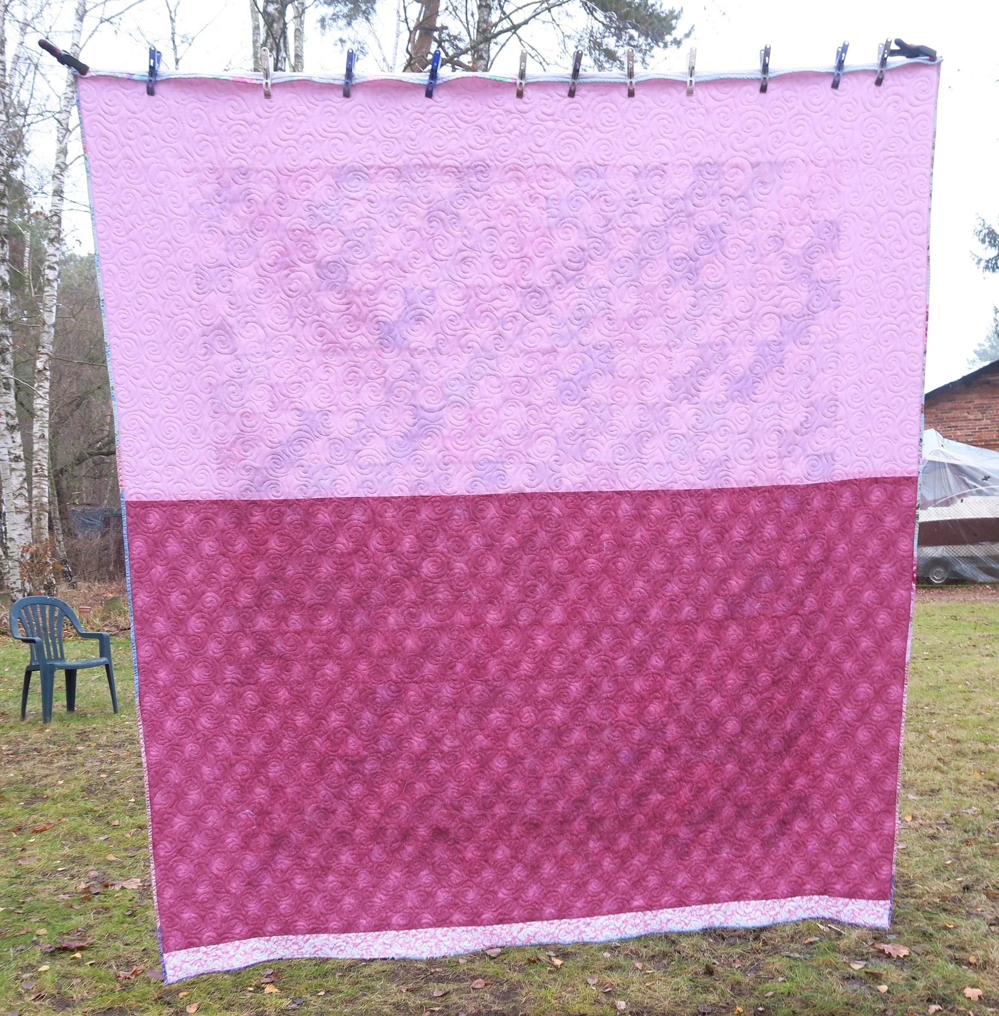 You can see, while hanging up anyway, that I have see through because I made a backing that was half dark, and half light. I probably will avoid doing that in the future if at all possible. But it isn’t noticeable once lying flat on a bed or table, or floor. It’s really only noticeable when hanging up with the light from behind coming in.