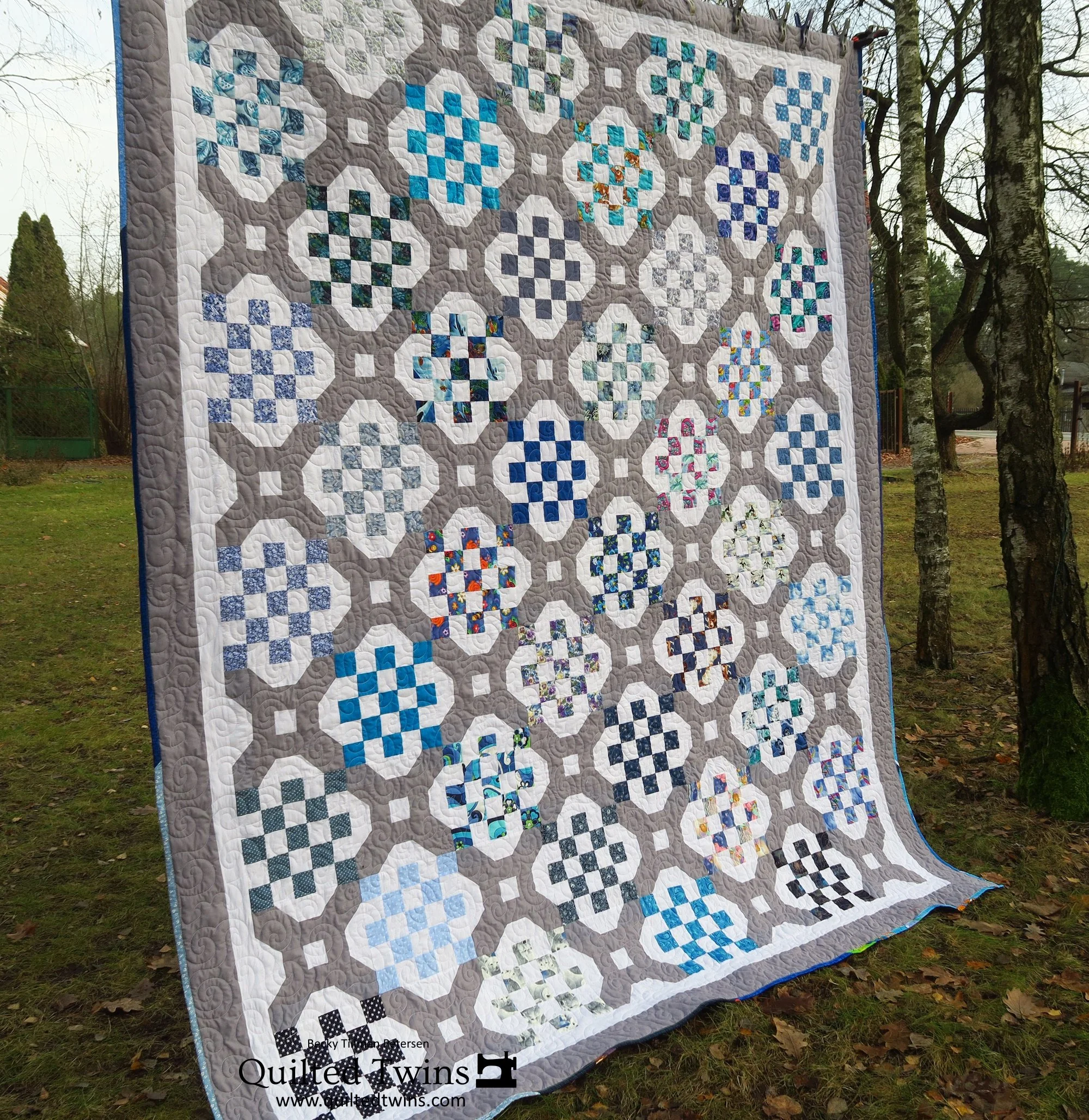 I do. Very much so. I think those 25 patches just kind of sneaking in there bordering the gray x blocks - as if I worked really hard at placing them as part of the block. I didn’t. The whole quilt is just two blocks. Yes, two blocks. The blue checkerboard just happen to tuck right up next to the gray and creates that effect.