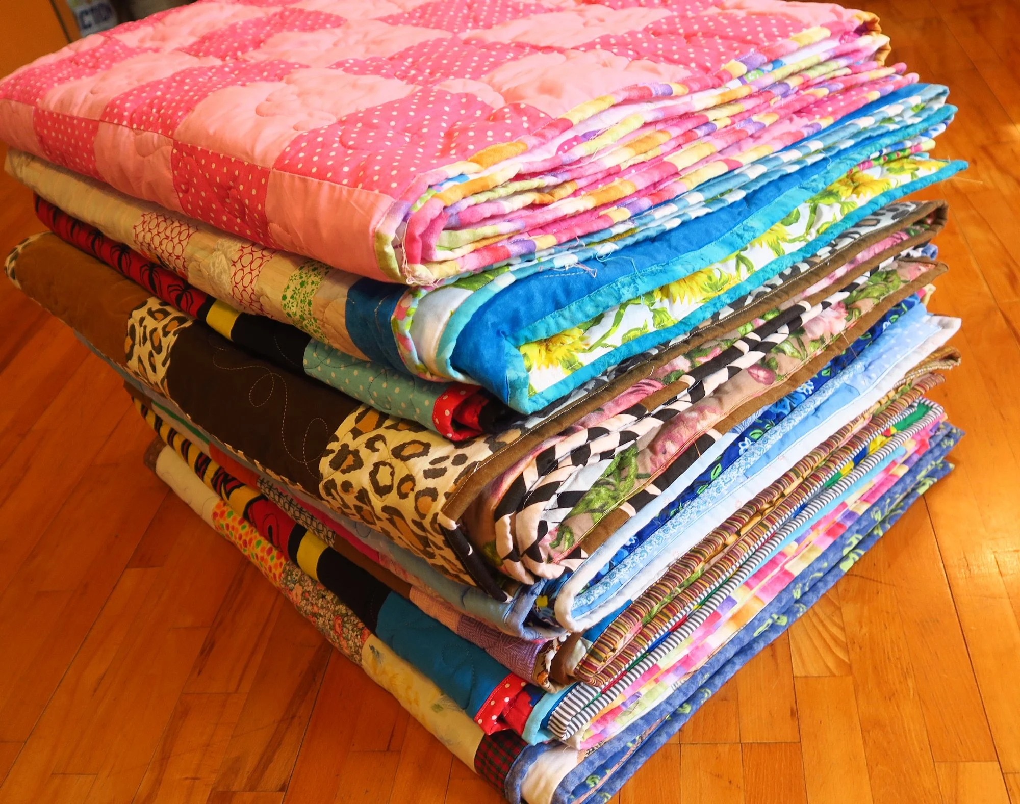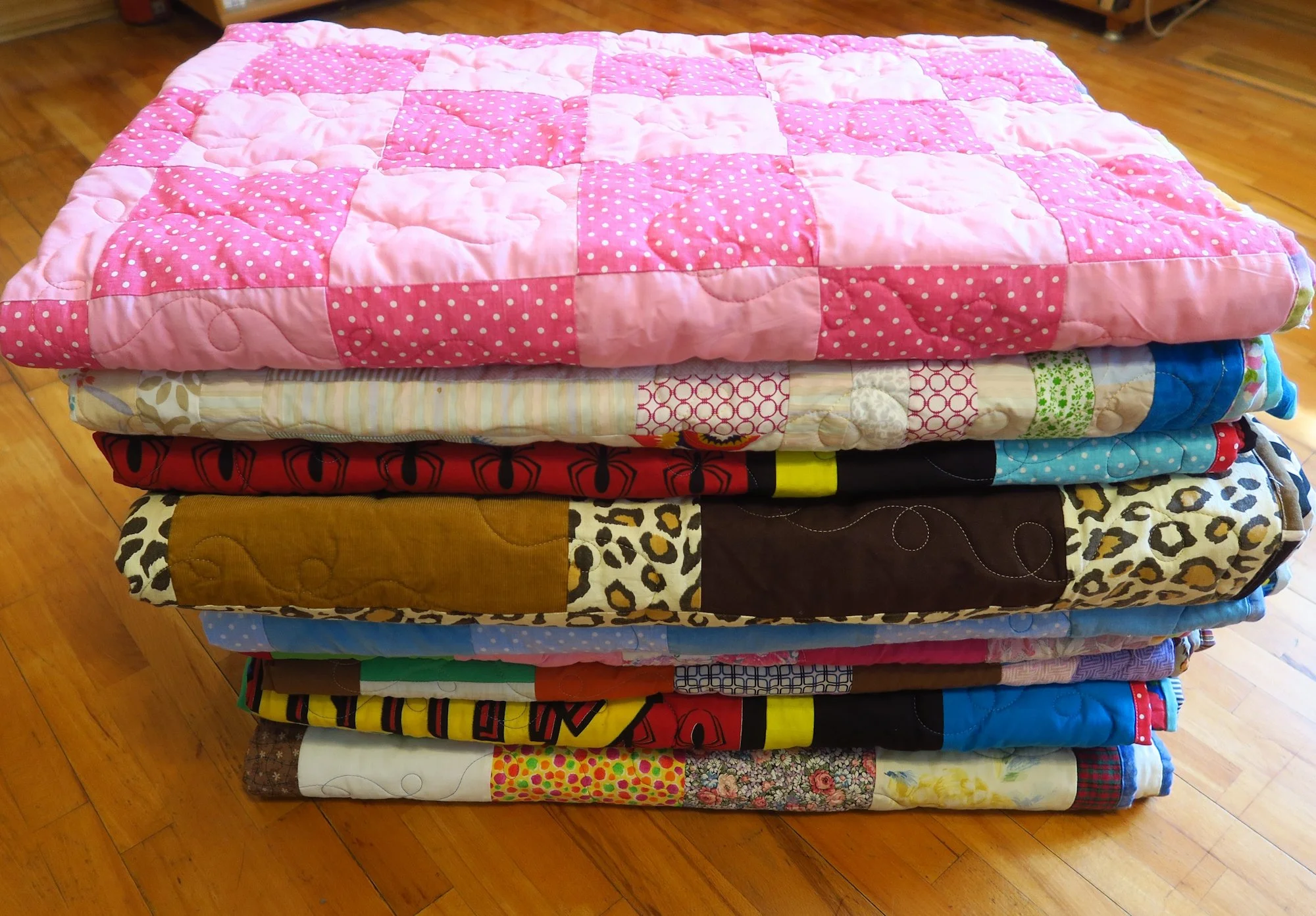 Here is the pile of 10 quilts - the last ten for the year 2025 that I will finish - of charity quilts.