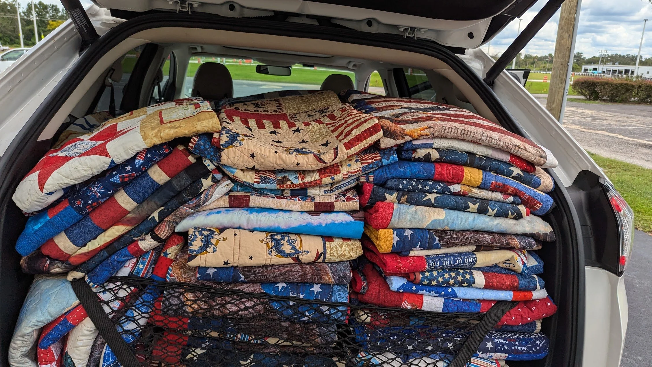 Here is Tammy packing up the last of the quilts into her vehicle!