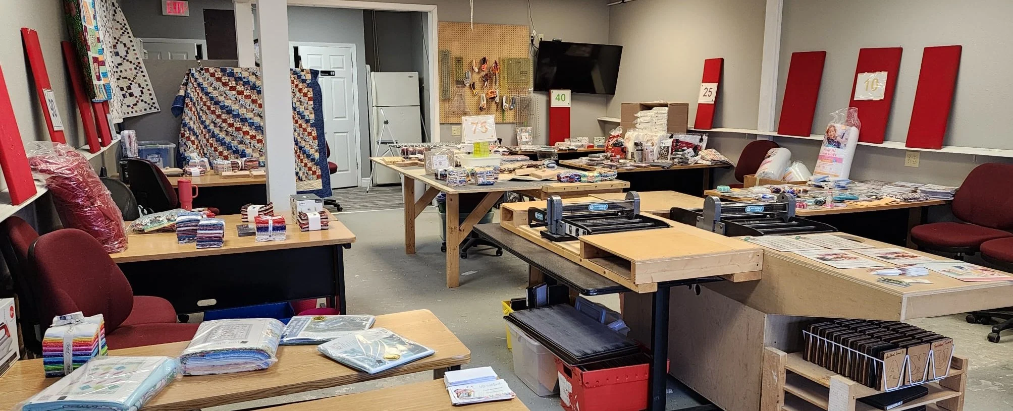 Local people who make QOV for this challenge came in on Thursday and Saturday and chose from among the donated gifts. Each person was given 100 points to use as ‘money’ of sorts to get what they wanted. We separated out the gifts in various points in our Sewin’ Shop classroom.