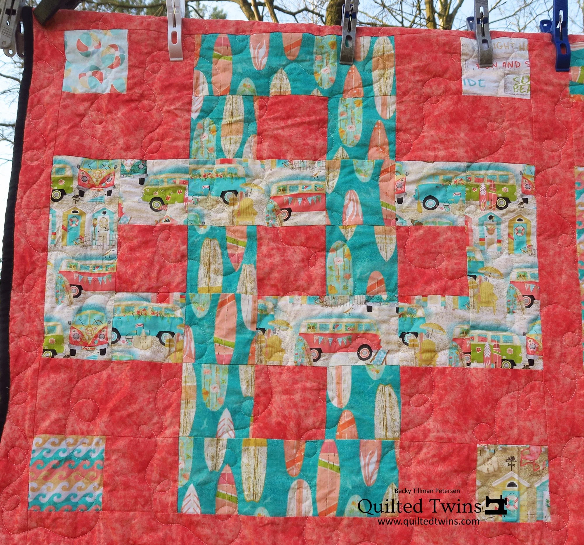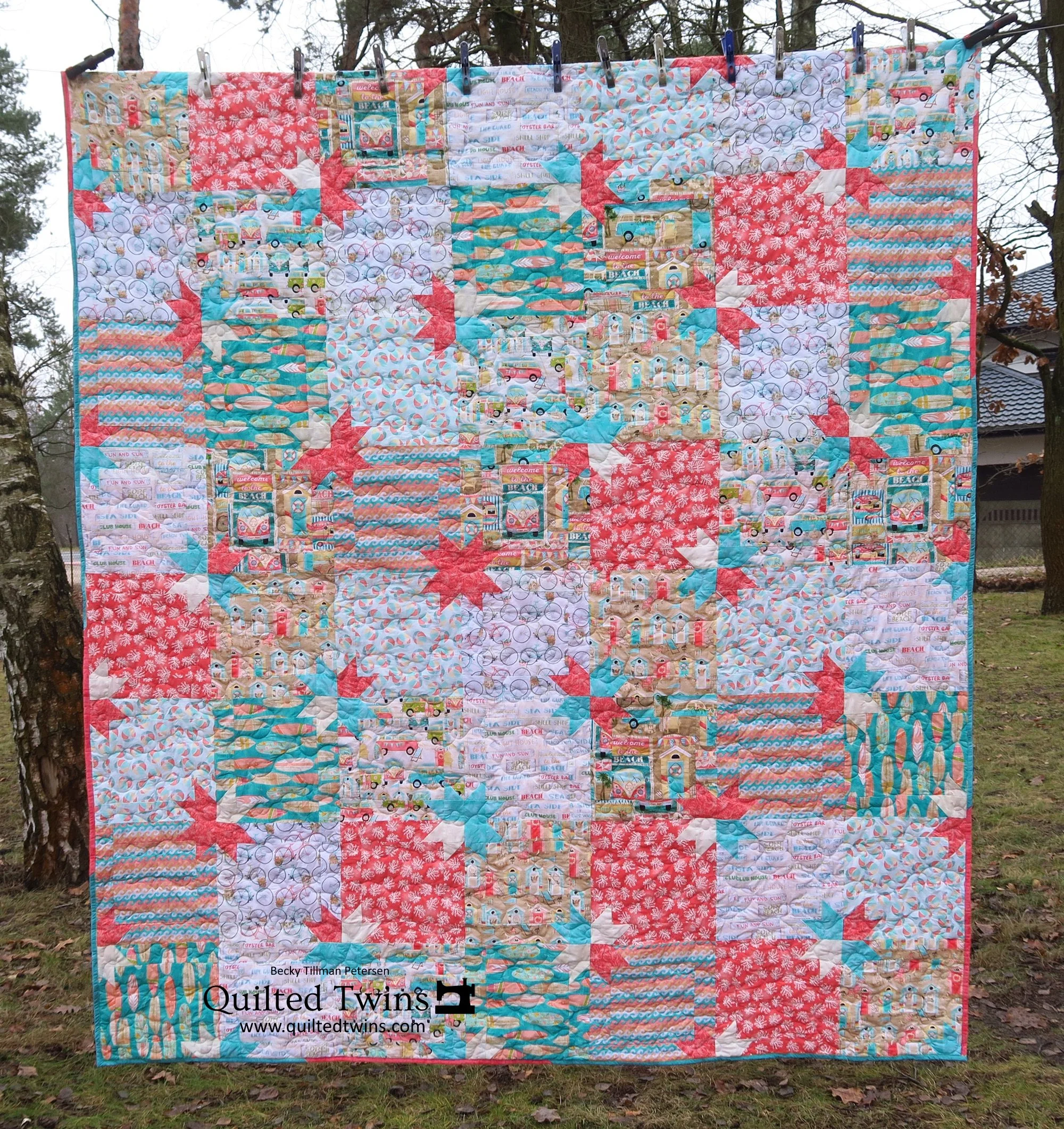 I used some fat quarters that we had called Beach Therapy and surrounded all of those fabrics with the coral blender that we have which seems so absolutely practical!