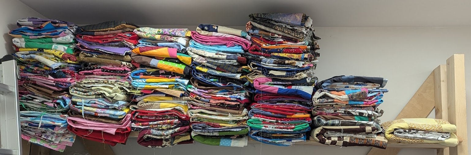 I have several bolts that are coming to the end (remember, I have to buy 50 meter (similar to a yard) bolts, so when I come to the end of a bolt, it is something! I had kind of overbought back in 2022, so I am looking forward to getting all my backing bolts to fit on the two large shelves I have in my long arm room. Right now I have had to use the two shelves plus a big plastic bin plus a few bolts that are upstairs. Naturally that means fewer choices for me when it comes to backing when I use up a few of them, but I’m still fine for choices.